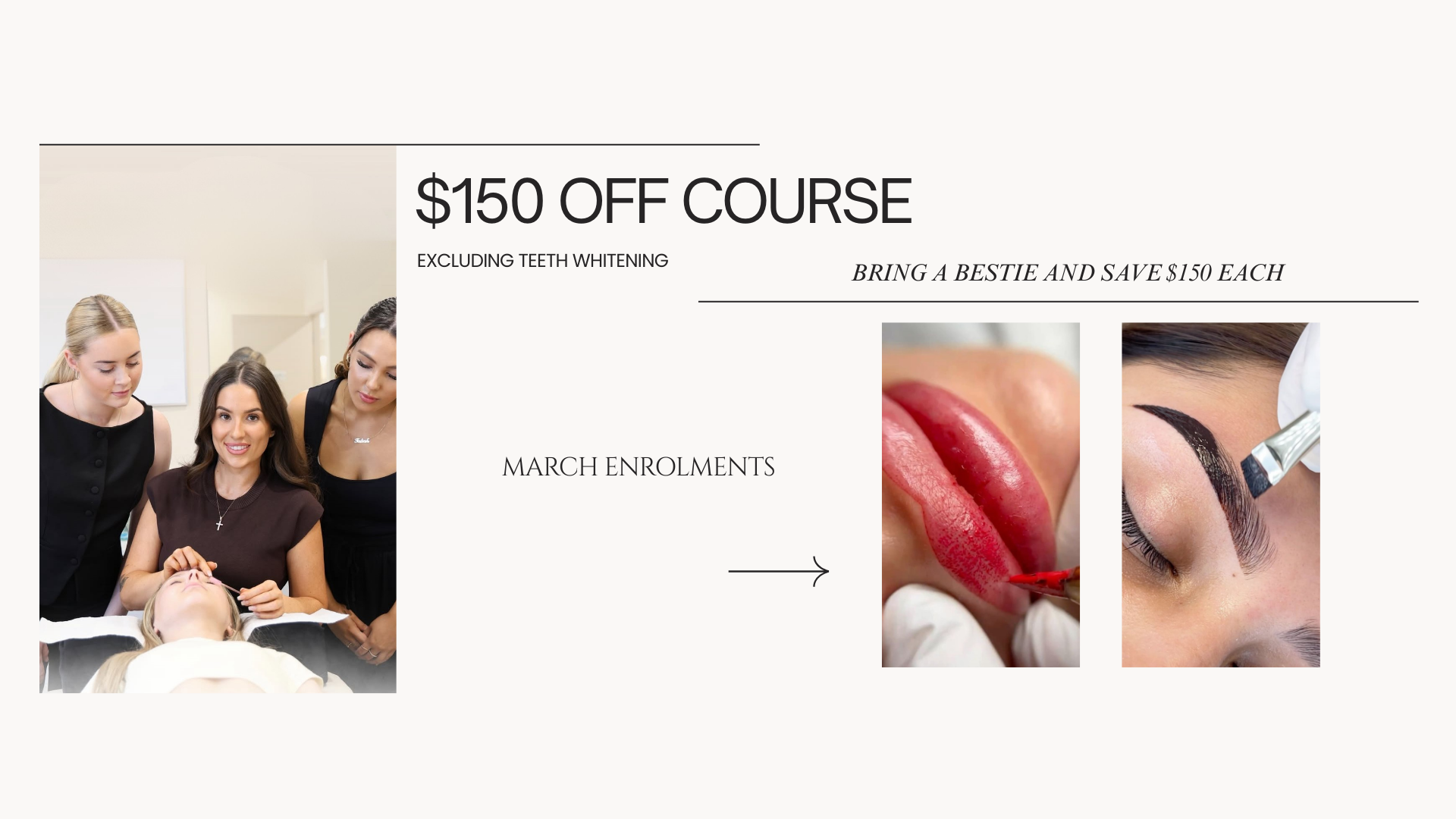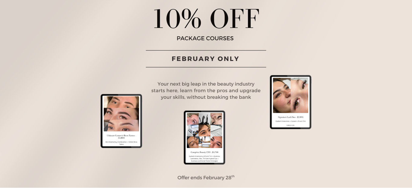 Enhance your beauty services with our expert in-salon and online courses. Master Eyelash Extensions, Brow Lamination, Brow and Lip Cosmetic Tattooing, Makeup, Lash Lifts and Teeth Whitening.